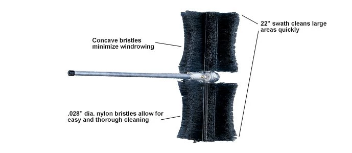 - Concave bristles minimize windrowing