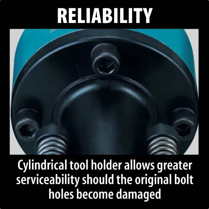 - Cylindrical tool holder enables new bolt holes to be drilled should the original bolts break